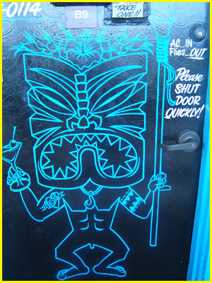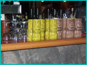 | Tiki marching down the bar at Tiki's in Waikiki |