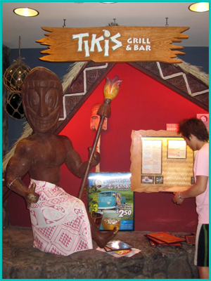 | Tiki marching down the bar at Tiki's in Waikiki |